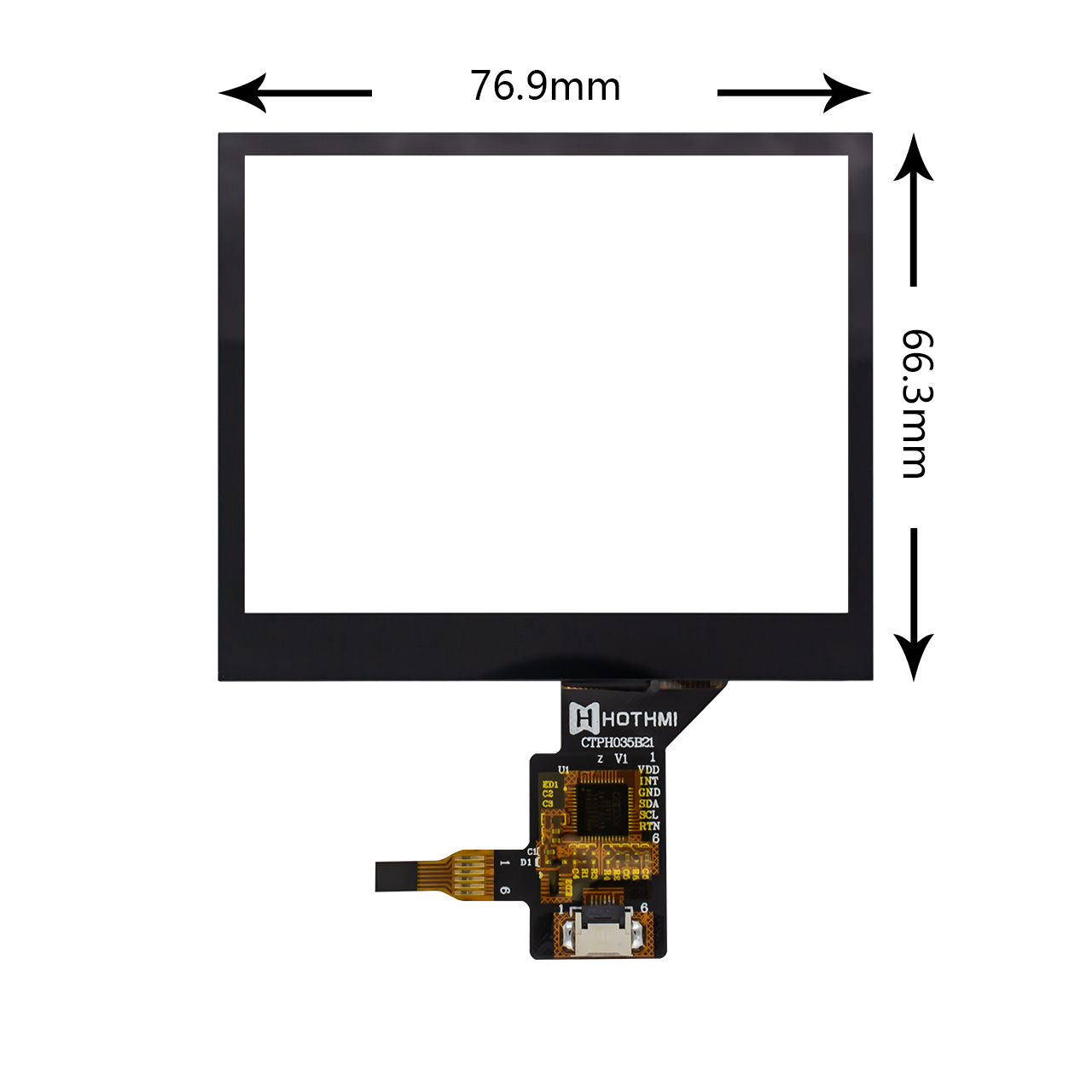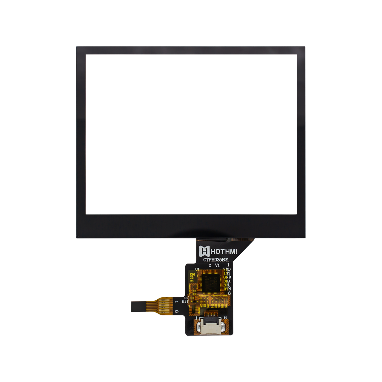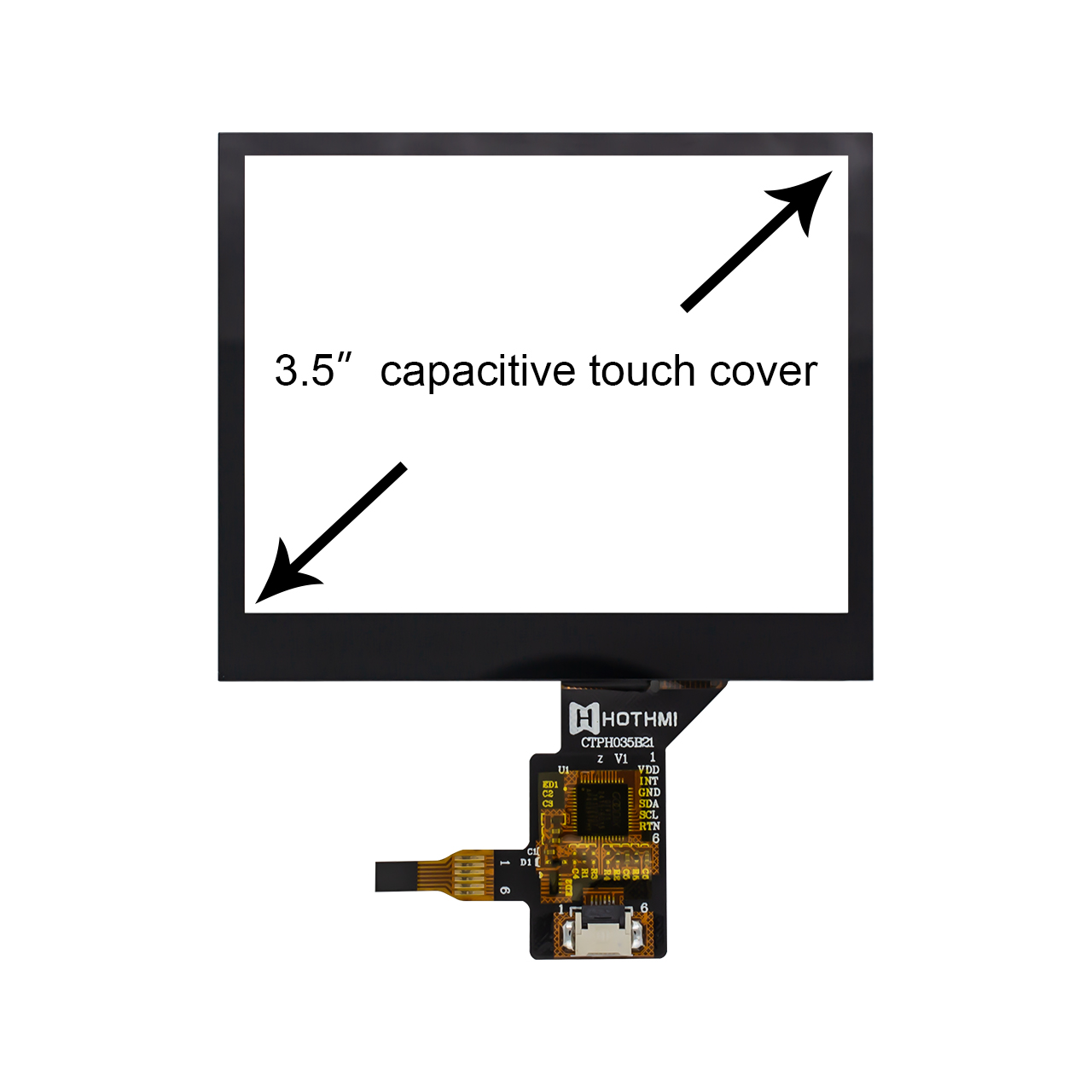 該產(chǎn)品是一款3.5英寸電容式觸摸面板,與3.5英寸的TFT LCD 顯示屏1:1比例吻合,用戶可以通過光學(xué)貼合或者框貼的方式與顯示器綁定在一起。